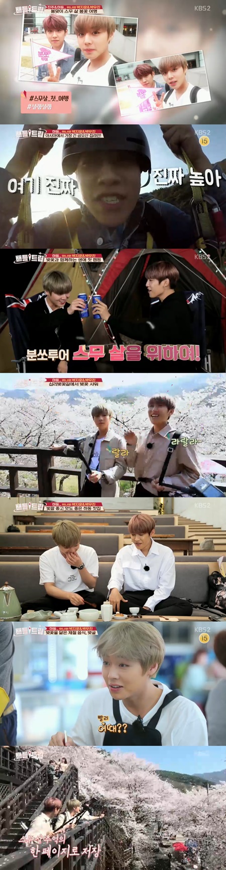 5일 방송된 KBS2 여행 설계 예능 프로그램 '배틀트립'에는 경남 하동과 진주로 '분쏘 투어'를 떠난 그룹 워너원 박지훈-박우진의 '스무 살, 봄꽃 여행'편이 그려졌다.