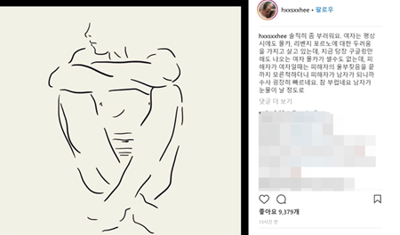 한서희는 8일 자신의 인스타그램을 통해 "솔직히 좀 부러워요. 여자는 평상시에도 몰카, 리벤지 포르노에 대한 두려움을 가지고 살고 있는데"라고 말문을 열었다.