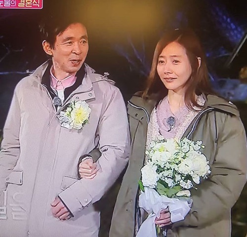 공개된 사진은 지난 15일 방송된 SBS 예능프로그램 '불타는 청춘'에서 김국진과 강수지가 스몰 웨딩을 하고 있는 장면이다. 두 사람의 행복한 모습이 시선을 사로잡는다.
