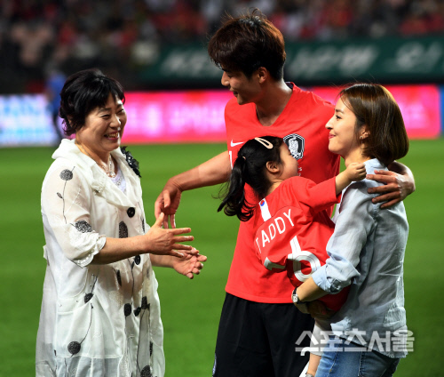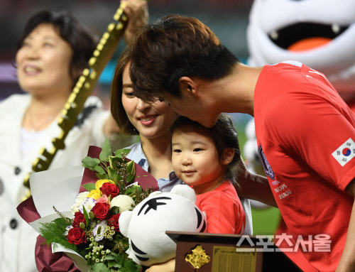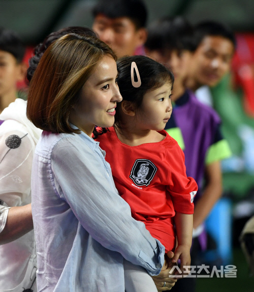 지난 1일 대한민국과 보스니아 축구대표팀간 평가전에서 배우 한혜진 기성용 부부의 딸 시온이가 최초 공개됐다.