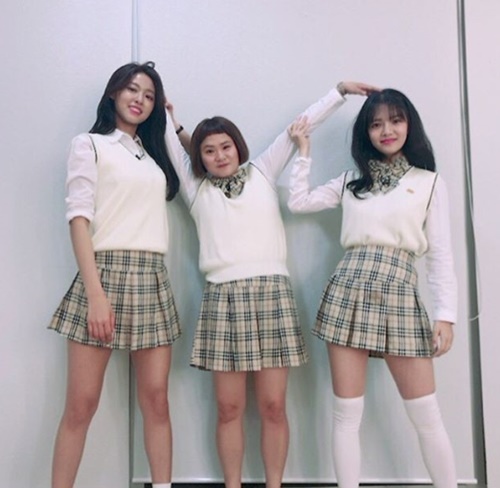 공개된 사진 속에는 남다른 개성을 뽐내는 설현-김신영-지민의 모습이 담겨 있다. 교복을 입은 채 미소 짓고 있는 세 사람의 자태는 훈훈함을 자아낸다.