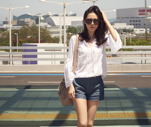 최근 드라마에서 현실적이면서도 스타일리시한 직장인 패션을 선보이며 완판녀 대열에 합류한 손예진은 이날 역시 따라 하기 쉬우면서도 사랑스러운 룩으로 시선을 끌었다. 에스닉한 화이트 블라우스와 리넨 쇼츠, 그리고 깔끔한 스니커즈로 편안하면서도 로맨틱한 느낌을 연출한 손예진은 여기에 마이클 코어스 블레이클리백으로 고급스러움까지 놓치지 않았다.