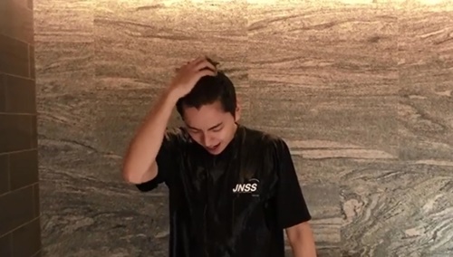 배우 강한나의 지목을 받고 아이스버킷 챌린지에 참여한 그는 아무런 멘트 없이 얼음물을 뒤집어썼다.