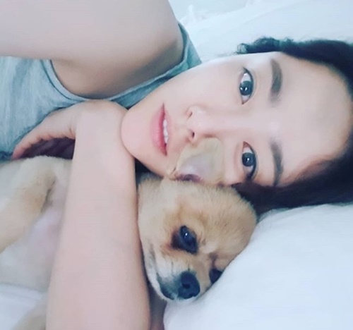 사진 속 전혜빈은 본인의 반려견을 꽉 끌어안고 카메라를 응시하고 있다. 초롱초롱한 눈망울과 잡티 하나 없는 피부가 눈길을 끈다.