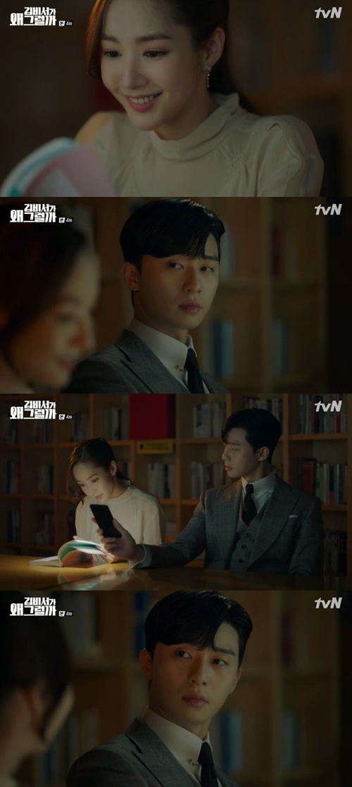 14일 오후 방송된 tvN 수목드라마 '김비서가 왜 그럴까'에서는 서로에 대한 감정이 커지는 김미소(박민영 분)과 이영준(박서준 분)의 모습이 전파를 탔다.