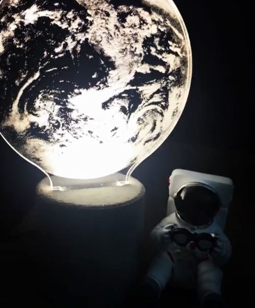 공개된 영상 속에는 우주복을 입은 인형의 모습이 보인다. 이어 옆에서 환하게 빛나는 지구 모양의 조명이 눈길을 사로잡는다. 평소 천체망원경으로 별을 관찰하는 것이 취미인 하지원은 우주를 향한 관심이 큰 것으로 알려져있다.