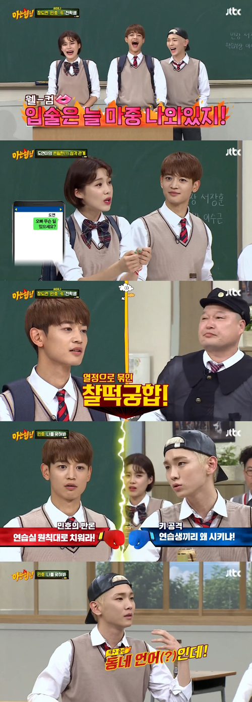16일 오후 방송된 JTBC 예능프로그램 '아는 형님'에서는 민호, 키, 개그우먼 장도연이 전학생으로 출연했다.
