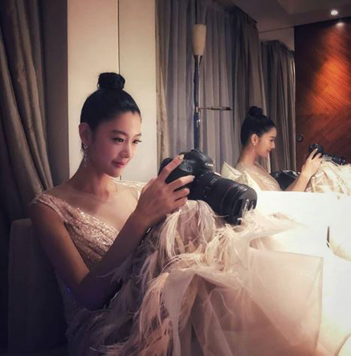 또 다른 사진에서는 머리를 묶어 올린 채 청순한 비주얼을 드러냈다. 거울에 비친 모습 또한 감탄을 자아낸다.