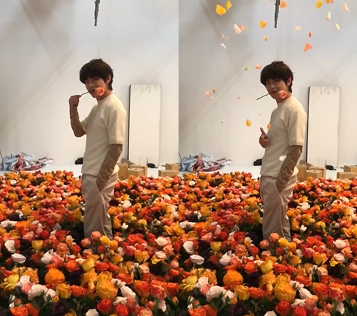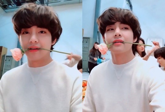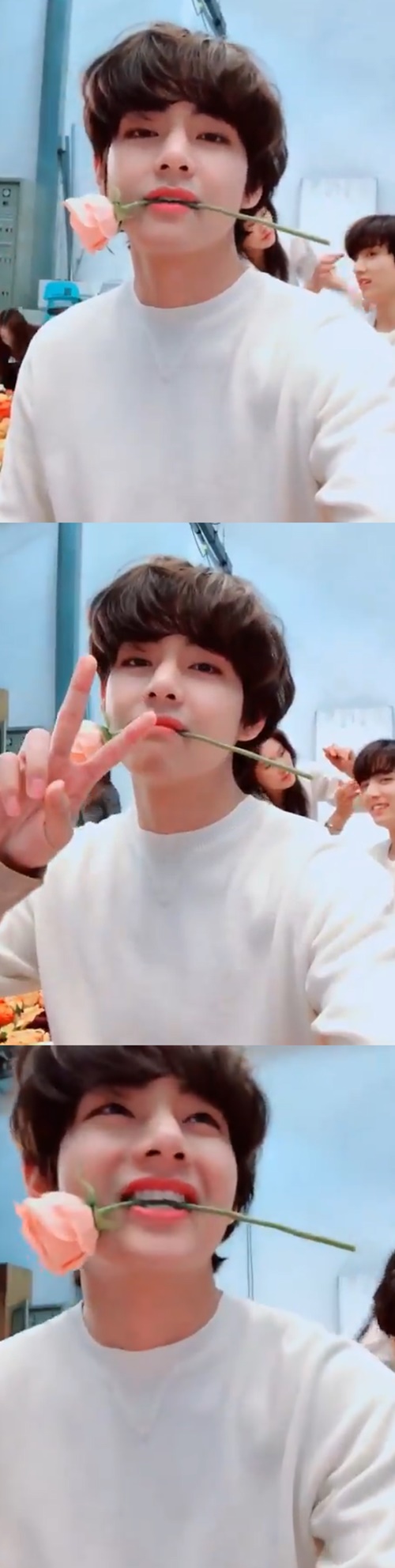 공개된 영상 속 뷔는 장미꽃을 물고 카메라를 향해 포즈를 취하고 있다. 헝클어진 머리에 그윽한 눈빛을 한 뷔의 아련한 모습이 보는 이들을 설레게 만들었다.