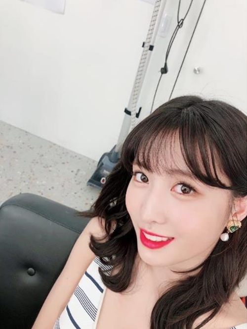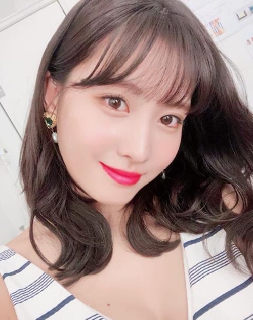 공개된 사진 속에서 입술을 붉게 물들인 모모가 해맑게 웃는 표정으로 정면을 응시하는 모습이 담겨있다.