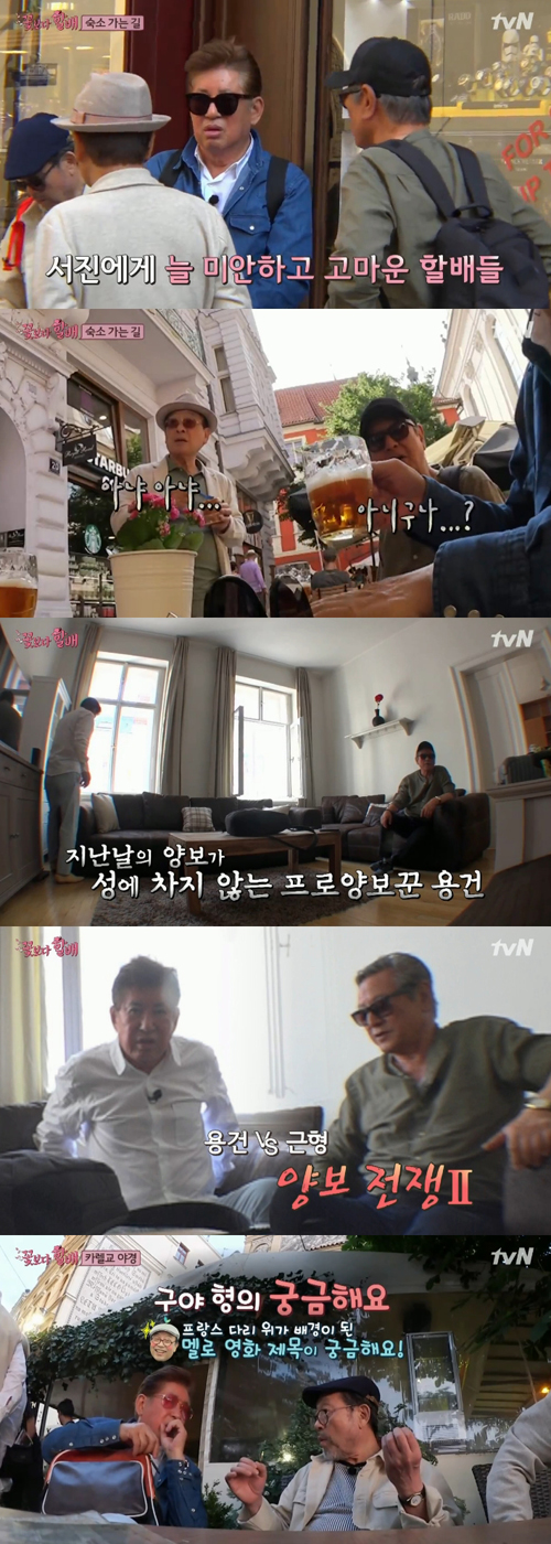 이서진은 야경 보기 좋은 곳으로 '꽃할배'들을 안내했고, 모두는 카렐교 풍경을 보며 차를 마셨다. 특히 백일섭은 카렐교를 보며 "갑자기 쌍둥이 손자가 생각이 난다. 둘째가 영어를 잘 한다"고 떠올렸다.