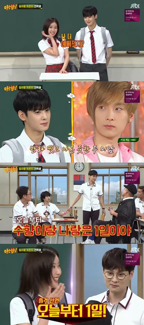 21일 오후 방송된 JTBC 예능 프로그램 '아는 형님'에서는 새 금토드라마 '내 아이디는 강남미인'에서 함께 호흡을 맞추는 임수향과 차은우가 전학생으로 찾아왔다.