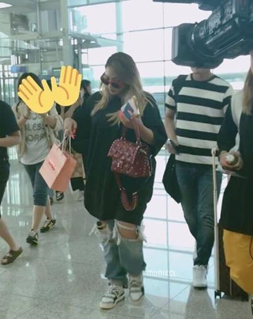 이날 씨엘이 출국하면서 후덕해진 몸매가 팬들의 카메라에 포착됐다. 그는 단색 의상으로 몰라보게 달라진 몸매를 가렸다.