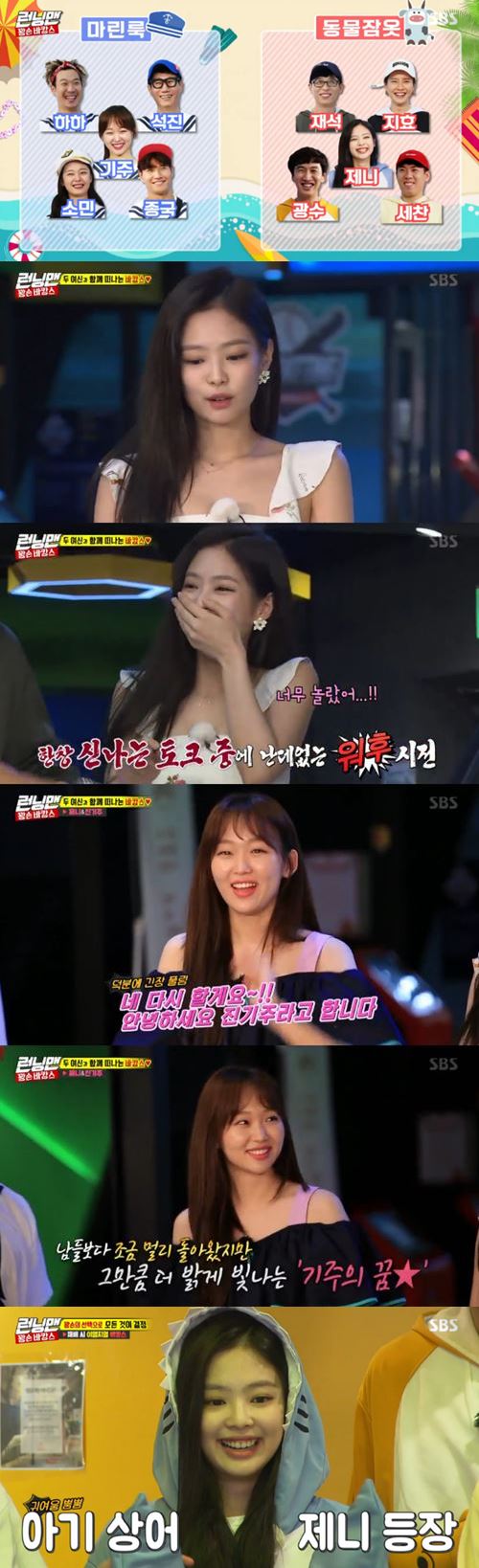 12일 오후 방송된 SBS 예능 프로그램 '런닝맨'에서는 '꽝손 바캉스' 특집으로 그룹 블랙핑크 제니, 배우 한기주가 출연했다.
