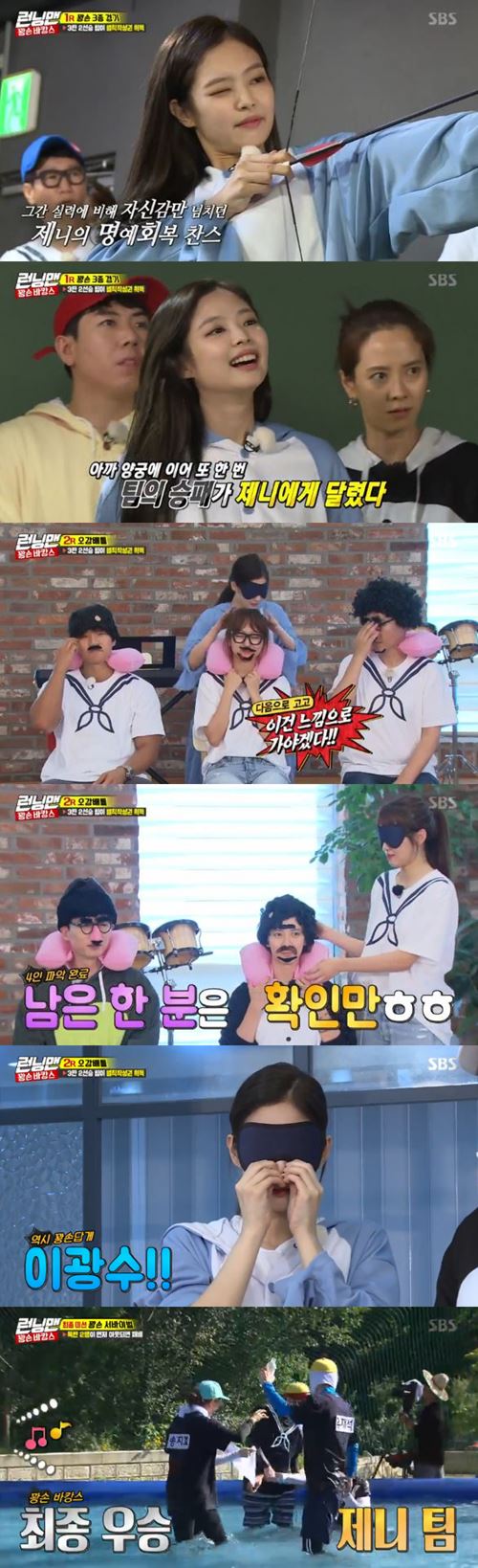 '꽝자의 게임'에서 대반전이 일어났다. 제니는 김종국과 펼친 양궁 게임에서 8점, 9점을 획득해 승리했다. 의외로 고득점을 기록한 제니의 화살에 멤버들은 환호했다. 이어 '축구 꽝자' 게임에서도 유일하게 정상적인 축구공을 선택해 골까지 기록했다. 첫 미션은 제니의 맹활약으로 제니팀이 승기를 잡았다.
