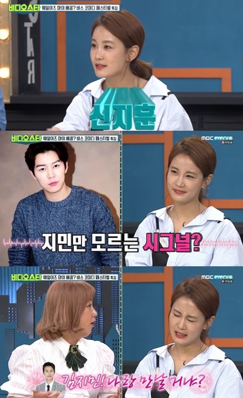 이에 김지민은 "배우 신지훈이다"라고 솔직하게 밝혔다. 그러자 박나래는 "제가 연결해줬다"면서 "신지훈 씨가 김지민을 특별히 챙긴다. 단체 채팅방에서도 '김지민 나랑 만날 거야?'라고 얘기하기도 한다"고 말해 김지민을 당황케 했다.