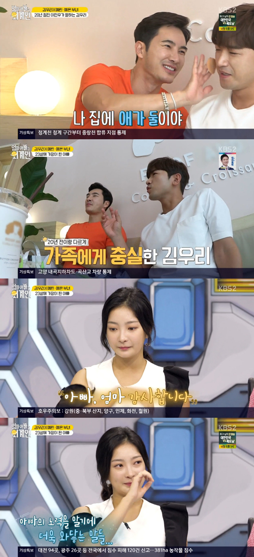 28일 오후 방송된 KBS2 예능 프로그램 '엄마아빠는 외계인'에서는 김우리가 그룹 신화 이민우를 만나 과거를 회상한 모습이 전파를 탔다.