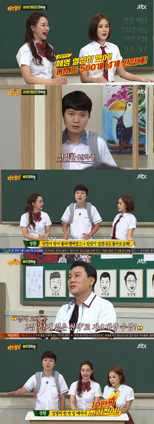 서장훈은 신정환에게 "인생에서 이미지가 가장 좋았을 때가 군대에서 앙골라 파병 갔을 때 아니었냐"고 질문했다. 신정환은 이에 동의했고, 나머지 멤버들은 "신정환 입대 후 2집 '날개 잃은 천사'로 대상을 탔다"고 말했다.