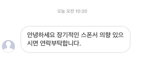 9일 백다은은 자신의 인스타그램을 통해 하나의 쪽지를 공개했다. 해당 쪽지에는 '안녕하세요. 장기적인 스폰서 의향 있으시면 연락 부탁합니다'는 내용이 담겨있다.