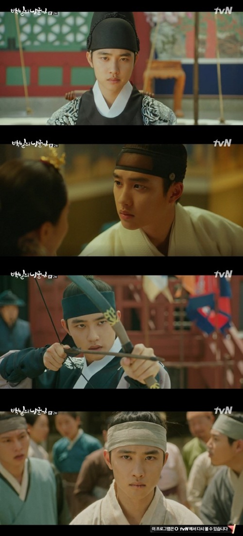 도경수는 tvN 월화드라마 '백일의 낭군님'에서 수려한 외모에 문무까지 겸비한 왕세자 이율 역을 맡아 안정적인 연기력을 선보이며 눈길을 끌고 있다.