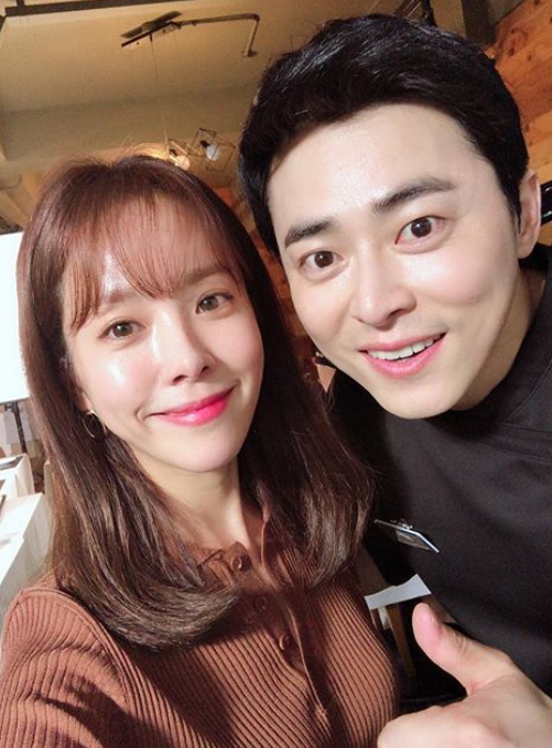 사진 속 한지민은 환한 미소를 지으며 조정석과 나란히 카메라를 응시하고 있다. 조정석은 이날 방송되는 tvN 수목드라마 '아는 와이프'에 특별 출연할 예정이다.