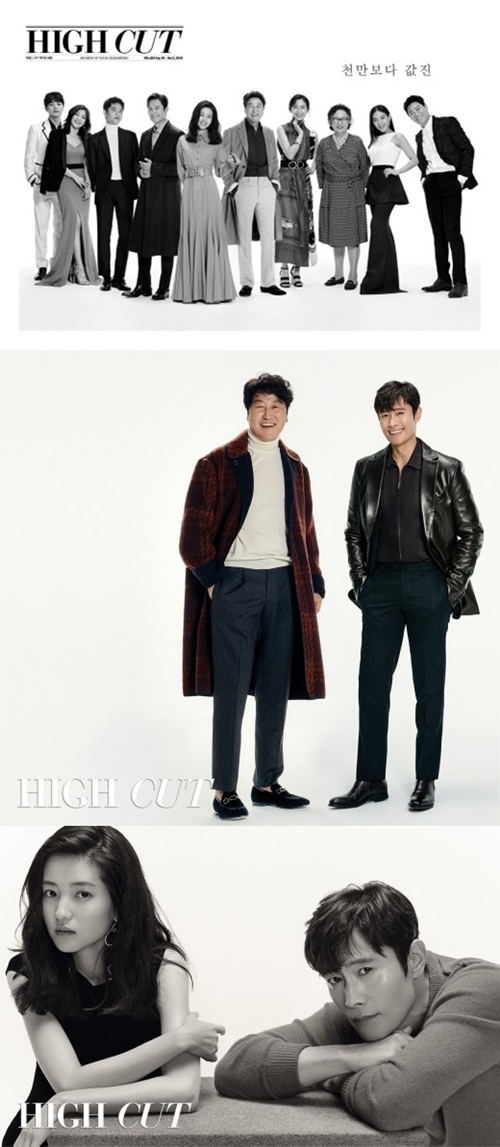 송강호 나문희 진선규 김소진 도경수 최희서 이병헌 박소담 박정민 김태리, 국가대표 배우 10인은 9월 20일 발행한 스타 스타일 매거진 '하이컷' 화보를 통해 청룡영화상 수상 기념화보를 공개했다. 송강호와 이병헌은 보기만 해도 흐뭇한 브로케미를 선보였고, 나문희는 소녀처럼 수줍은 미소로 카메라 앞에 섰다. '미스터 션샤인'의 아련한 커플 이병헌과 김태리의 커플컷은 드라마를 보는 듯 먹먹하고 가슴 찡한 여운을 남긴다. 박정민과 박소담은 개성 넘치는 시크한 커플 케미를 선보였고, 도경수는 깊고 차분한 눈빛으로 압도적인 분위기를 자아냈다.