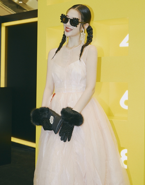 4일 신세계백화점 강남점에 세 명의 패셔니스타가 패션 브랜드 팝업스토어 오픈 행사에 참석, 일대를 들썩이게 했다. 이날 설리는 페미닌한 핑크톤의 드레스에 독특한 선글라스를 포인트로 귀여운 매력을 발산한 모습이다.