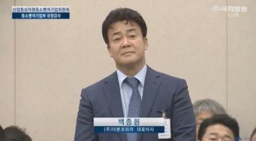 더본코리아의 대표이사를 맡고 있는 백종원은 12일 오후 서울 여의도 국회에서 열린 산업통상자원중소벤처기업위원회 국정감사에 참고인으로 출석했다.