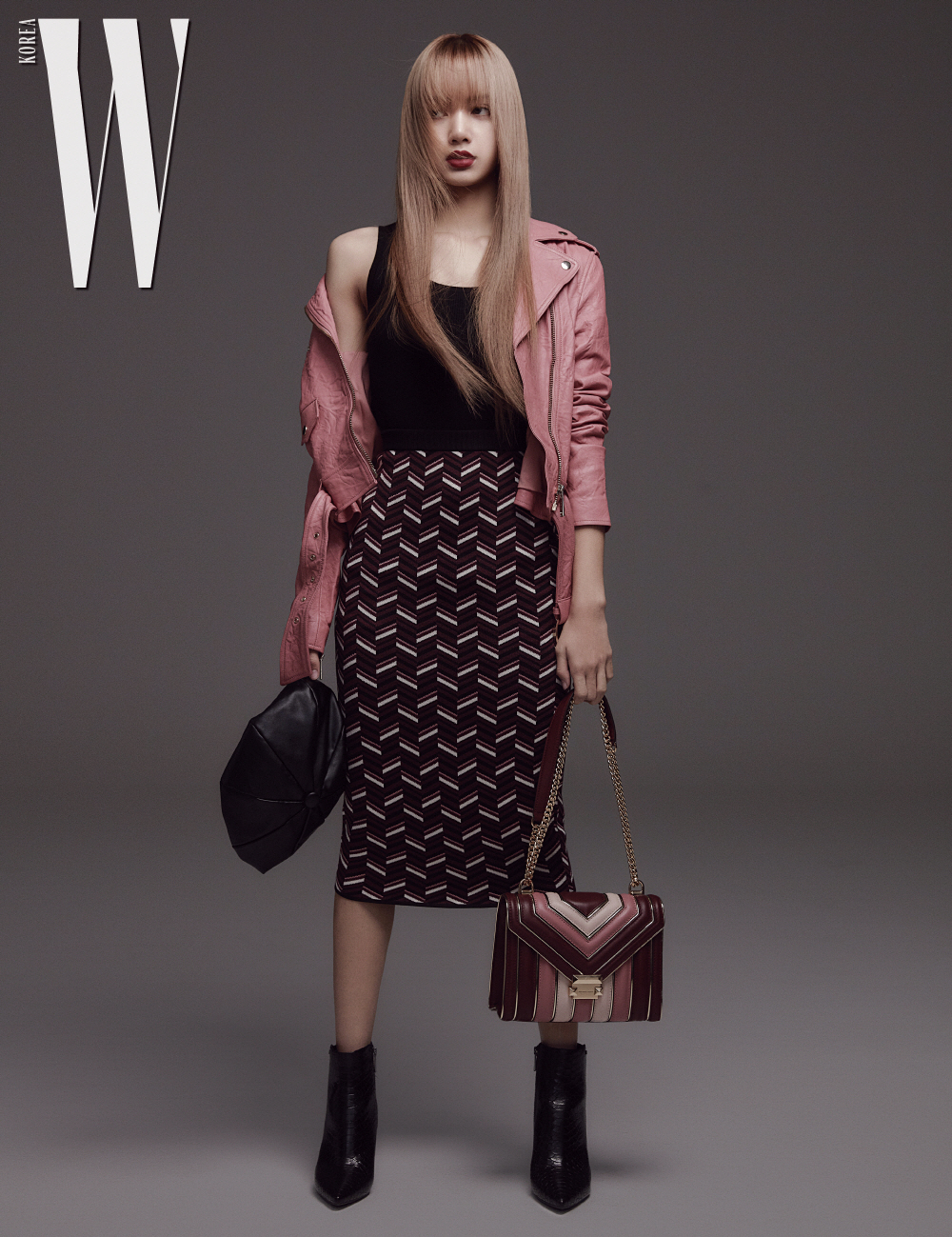 이번 촬영은 오롯이 리사에게 집중된 단조로운 공간 속에서 진행되었다. 핑크 컬러의 페이크 퍼와 가죽재킷, 2018 홀리데이 시즌의 메인 컬러인 고급스러운 와인 컬러와 핑크 컬러가 어우러진 세 가지 컬러의 숄더백을 무심한 듯 들고 있는 리사는 화려한 룩을 절제해 표현함으로써 자신만의 느낌과 매력을 더해 룩을 더욱 돋보이게 했다.