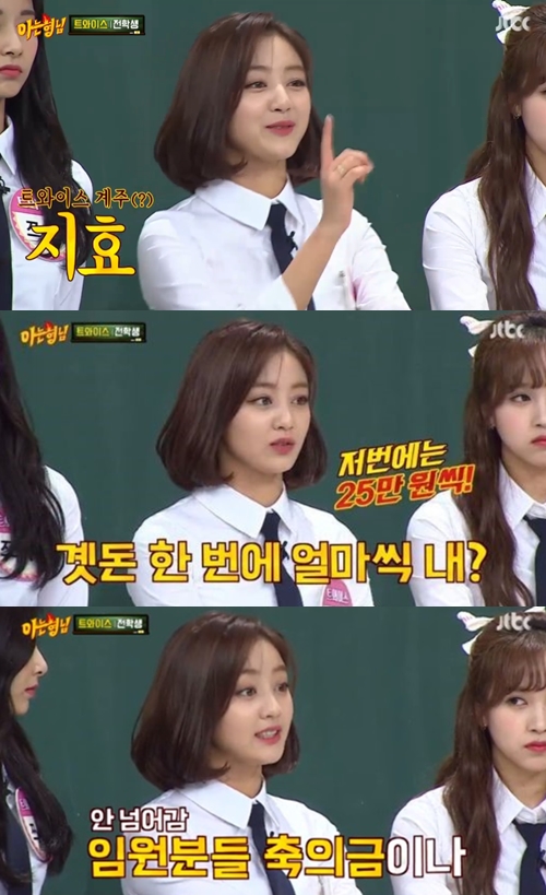[스포츠서울 박준범기자]'아는형님'에서 그룹 트와이스 지효가 야식을 위한 계모임에 관해 언급했다.