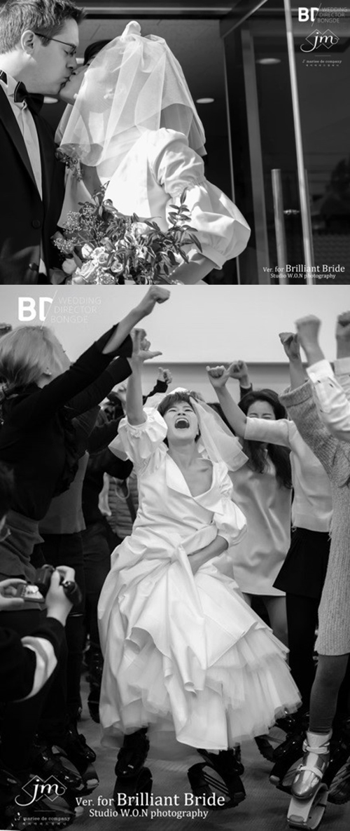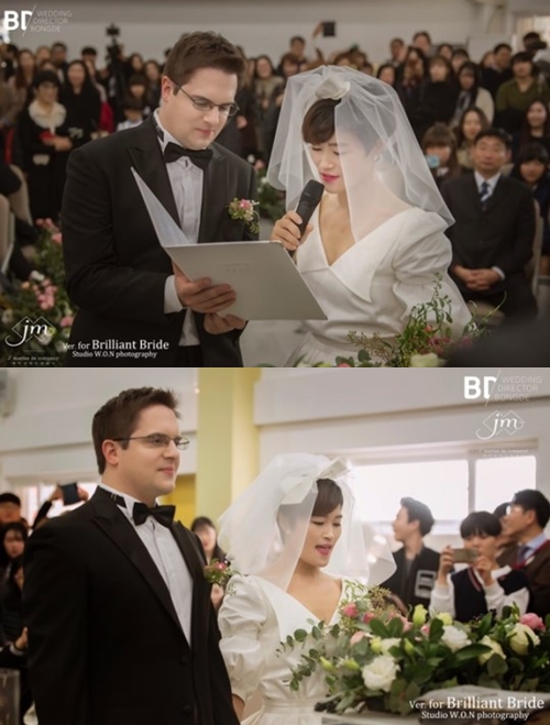 5일 해피메리드컴퍼니 측은 김혜선-스테판 지겔 부부의 결혼식 본식 웨딩 화보를 배포했다.