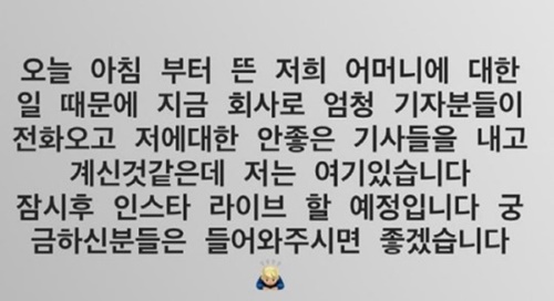 논란이 커지자 도끼는 이날 오후 자신의 인스타그램에 "오늘 아침부터 뜬 저희 어머니에 대한 일 때문에 지금 회사로 전화가 오고, 안 좋은 기사들을 내고 계신 것 같다. 저는 여기 있다. 잠시 후 인스타 라이브 할 예정이니 궁금하신 분들은 들어와주시면 좋겠다"는 글을 게재하며 직접 입장을 밝히겠다고 전했다.