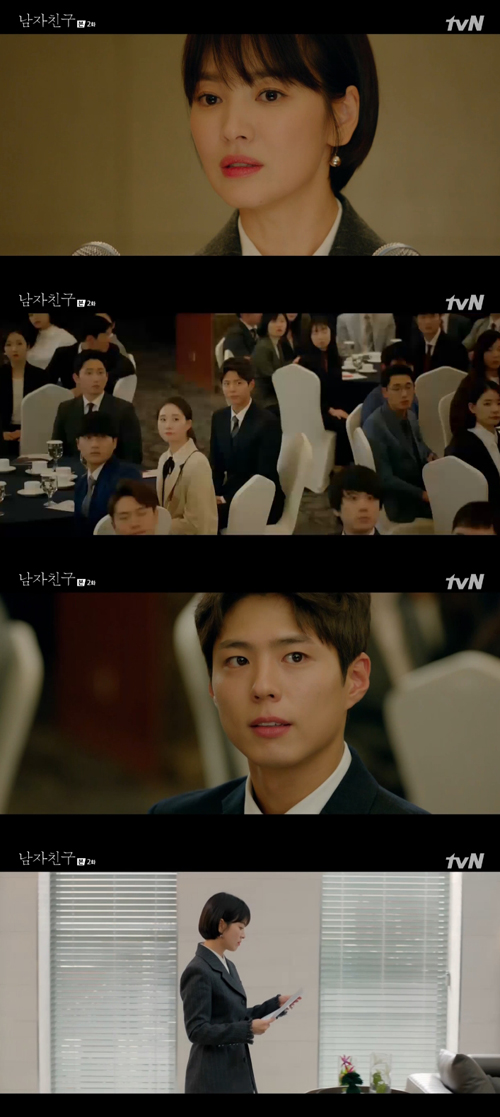 29일 오후 방송된 tvN 수목드라마 '남자친구'에서는 차수현(송혜교 분)과 김진혁(박보검 분)이 한 회사에서 마주친 장면이 전파를 탔다.