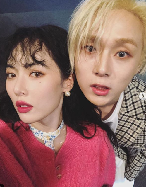 29일 밤 현아는 자신의 인스타그램에 공개 열애 중인 이던과 함께 촬영한 다정한 사진을 공개했다. 사진 속 두 사람은 얼굴을 맞대고 '비주얼 커플'의 면모를 과시하고 있다.