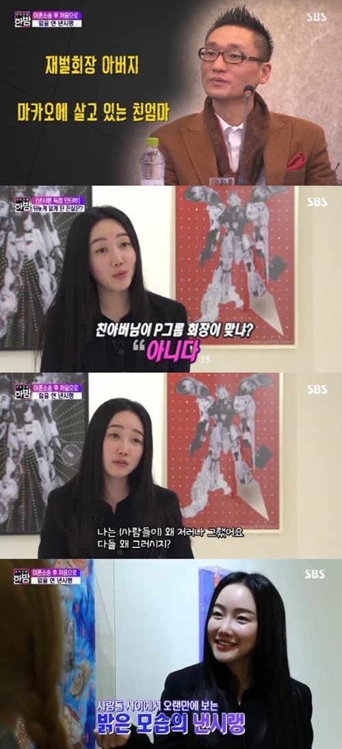 낸시랭은 18일 SBS '본격연예 한밤'을 통해 이혼 발표 뒤 처음으로 취재진 앞에서 심경을 전했다.