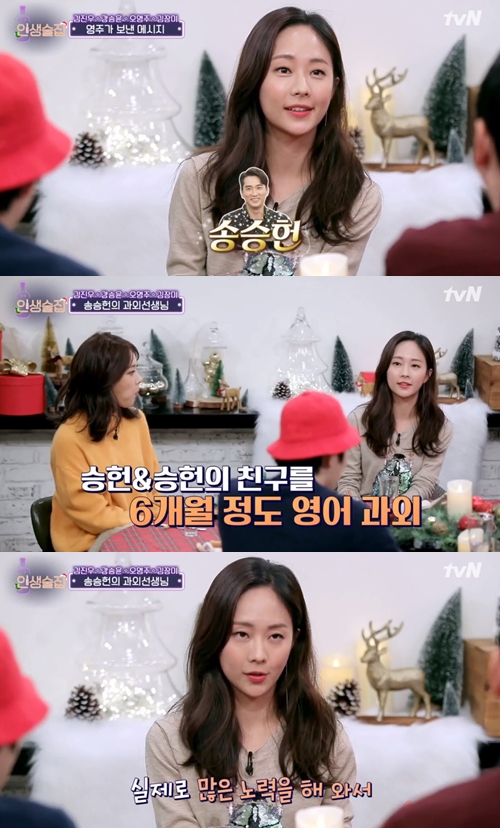 이날 오영주는 송승헌과의 인연을 털어놓았다. 그는 "지난해에 송승헌 씨와 친구분과 6개월 정도 영어 과외를 했다"고 밝혀 놀라움을 자아냈다. "송승헌의 영어 실력은 어떤가?"라는 질문에 오영주는 "노력도 많이 하고 열정도 가득하다"라고 답했다.