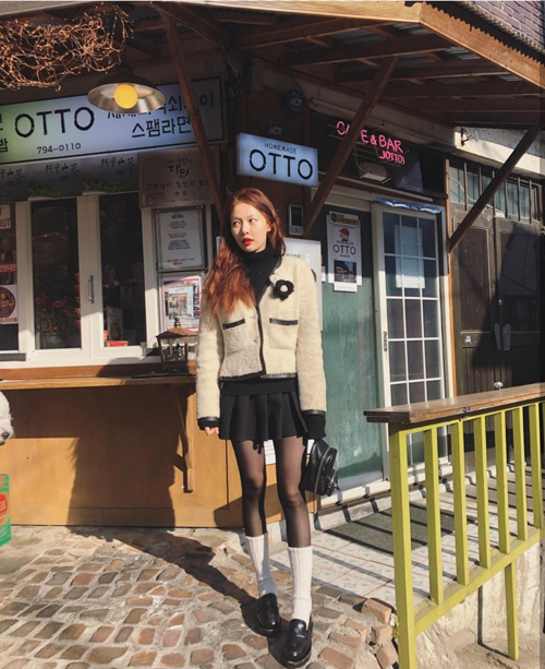 공개된 사진 속 현아는 미니스커트로 스타일링해 여성스러운 매력을 발산했다. 긴 웨이브 머리로 인형 같은 비주얼이 더욱 돋보였다. 특히 길고 가는 다리가 눈길을 사로잡았다.