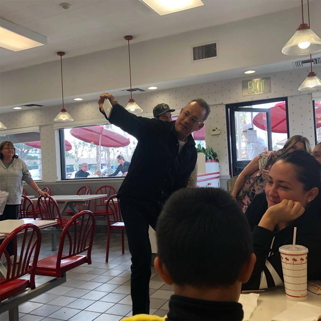 크리스마스를 앞둔 지난 21일(현지 시간) 톰 행크스는 캘리포니아 주 미국 한 유명 프랜차이즈 햄버거 가게에 방문해 고객들을 놀라게 했다.