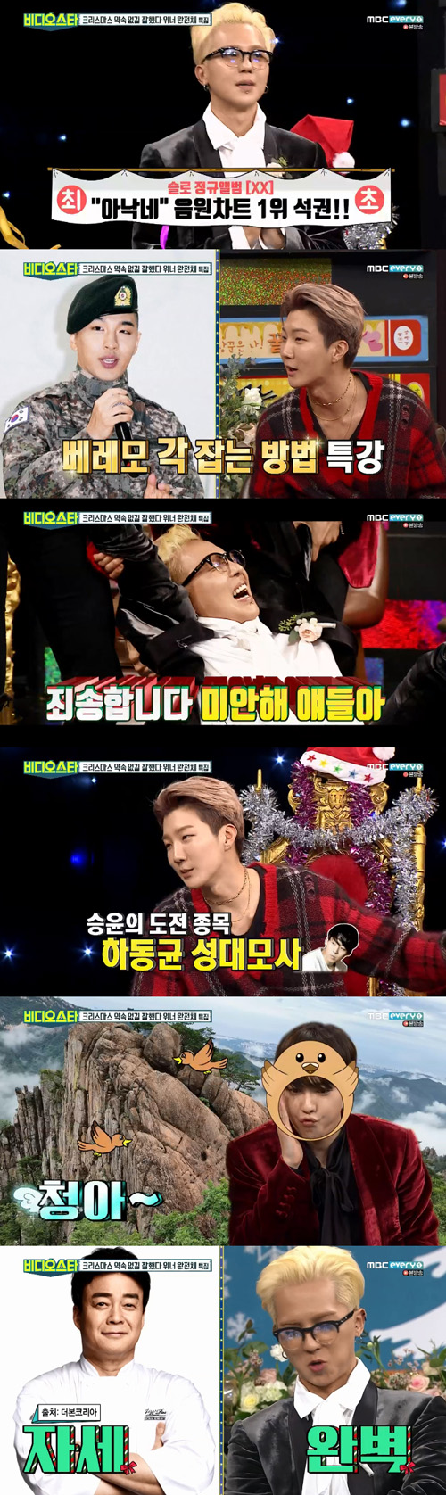 25일 방송된 MBC every1 예능 프로그램 '비디오스타'는 '위너 완전체 특집! 크리스마스 약속 없길 잘했다' 편으로 꾸며져 위너가 출연했다.