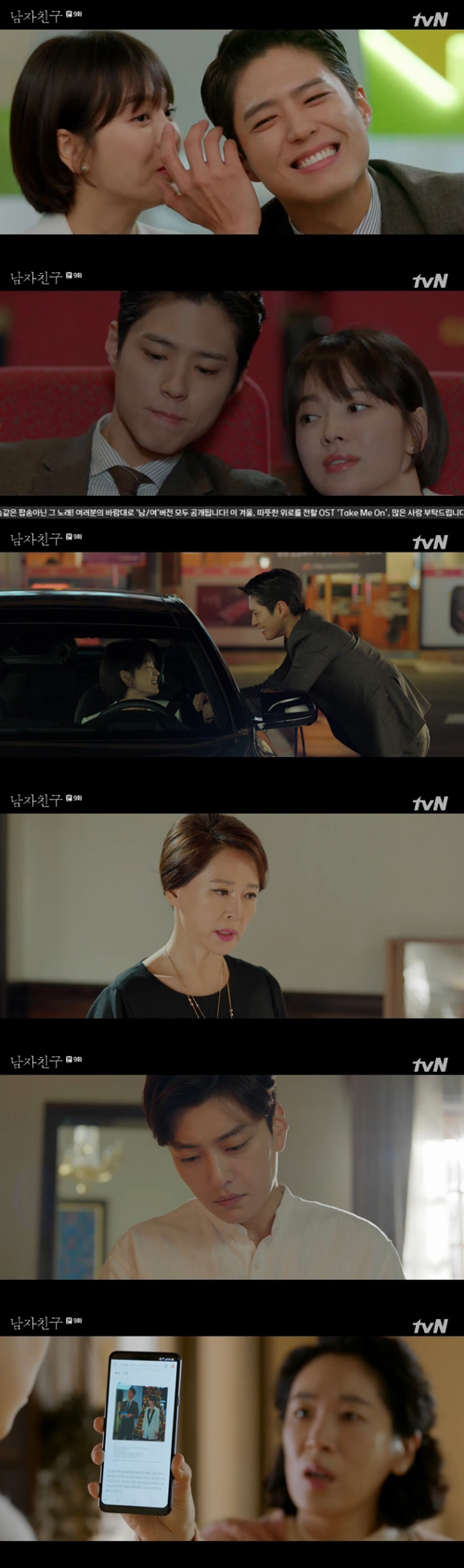2일 오후 방송된 tvN 수목드라마 '남자친구'에서는 김진혁(박보검 분)과 차수현(송혜교 분)이 각자의 시간을 갖기로 결정했지만 이내 다시 만난 모습이 그려졌다.