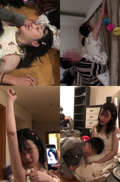 공개된 사진 속에는 지인들과 홈파티를 즐기고 있는 설리의 모습이 담겼다. 다소 난해한 포즈와 도를 넘은 듯한 장난기는 보는 이에게 당황스러움을 안겼다. 설리는 자신의 겨드랑이를 촬영하고, 한 여성 지인은 양손에 깍지를 끼고 그의 몸에 올라탔다.