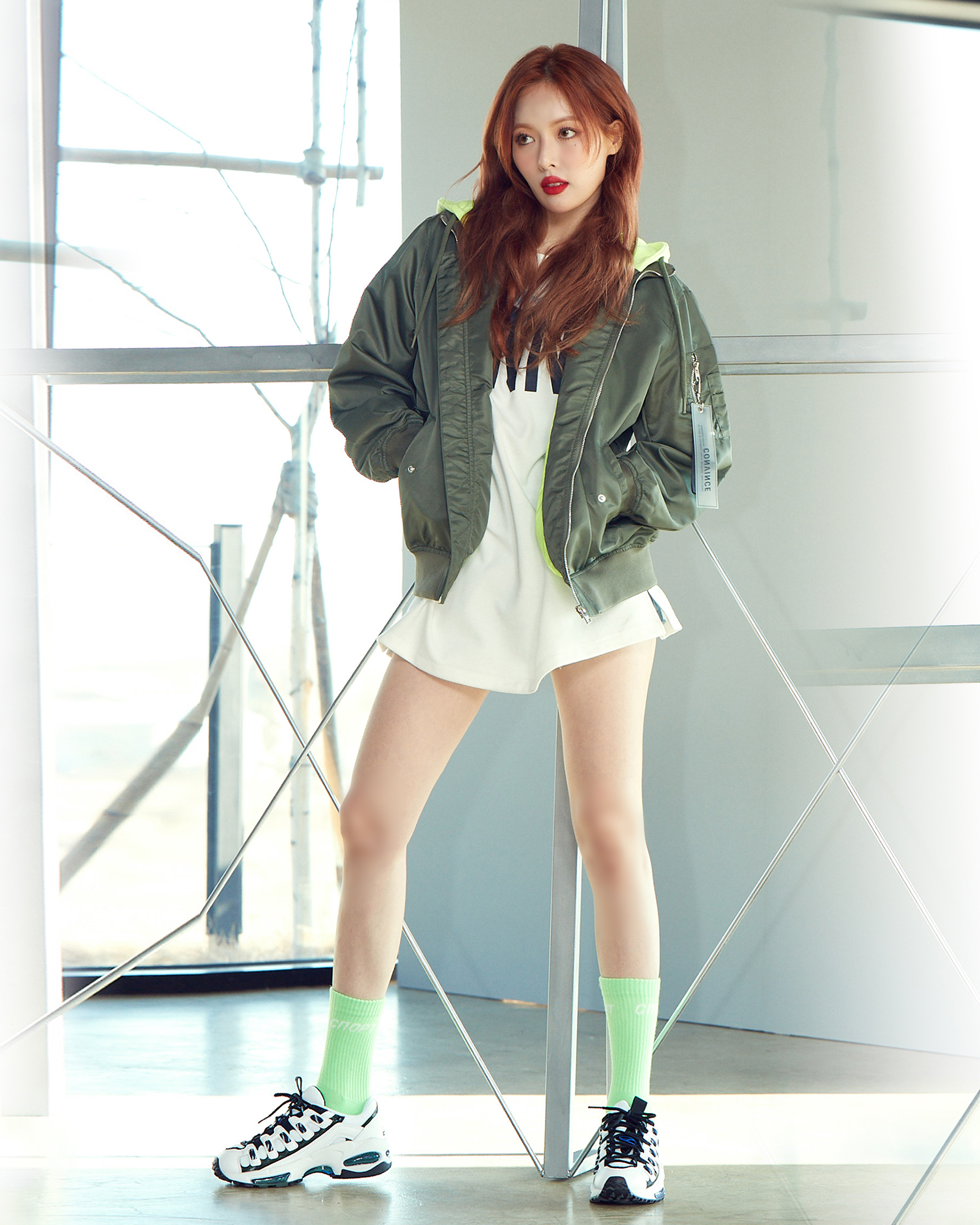 '애시드 놈코어(ACID NOMCORE)'의 콘셉트로 진행된 이번 화보에서 현아는 애시드한 컬러감의 스타일링으로 시크하면서도 섹시한 이미지를 표현하기 위해 다양한 포즈와 표정을 선보였다.