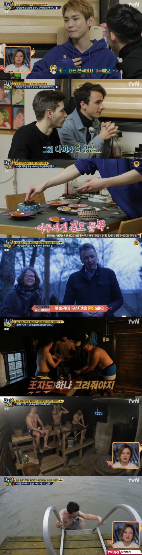 4일 오후 방송된 tvN 예능 프로그램 '서울메이트2'에서는 새로운 호스트로 프랑스 메이트들을 맞이하게 된 키의 모습이 전파를 탔다. 개그맨 김준호, 배우 이기우는 핀란드에서 118년 된 사우나를 방문해 국빈급 대접을 받았다.