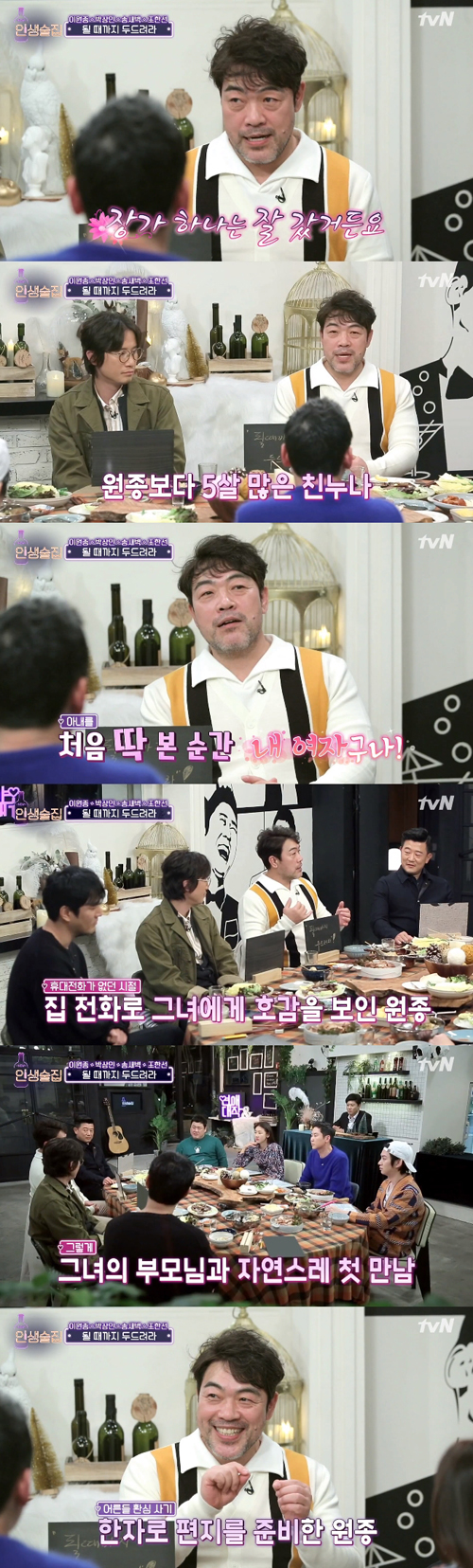 이원종은 "제가 가장 잘한 일은 아내를 만난 것이다. 장가 하나는 잘갔다"며 아내를 만나게 된 이야기를 풀기 시작했다. 그는 "제 누님이 저보다 5살이 많은데, (아내가)누님 보다 1살이 더 많다. 저를 가르치는 극단 연기 선생님이었다"고 설명했다.