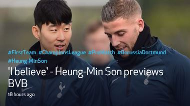 손흥민은 13일 토트넘 홈페이지를 통해 공개된 인터뷰에서 "조별리그에서 힘겹게 16강에 진출했던 것을 돌이켜보면 이번에 도르트문트를 상대하는 것은 큰 기쁨"이라며 "치열한 경기가 될 것인 만큼 집중력이 필요하다"고 강조했다.