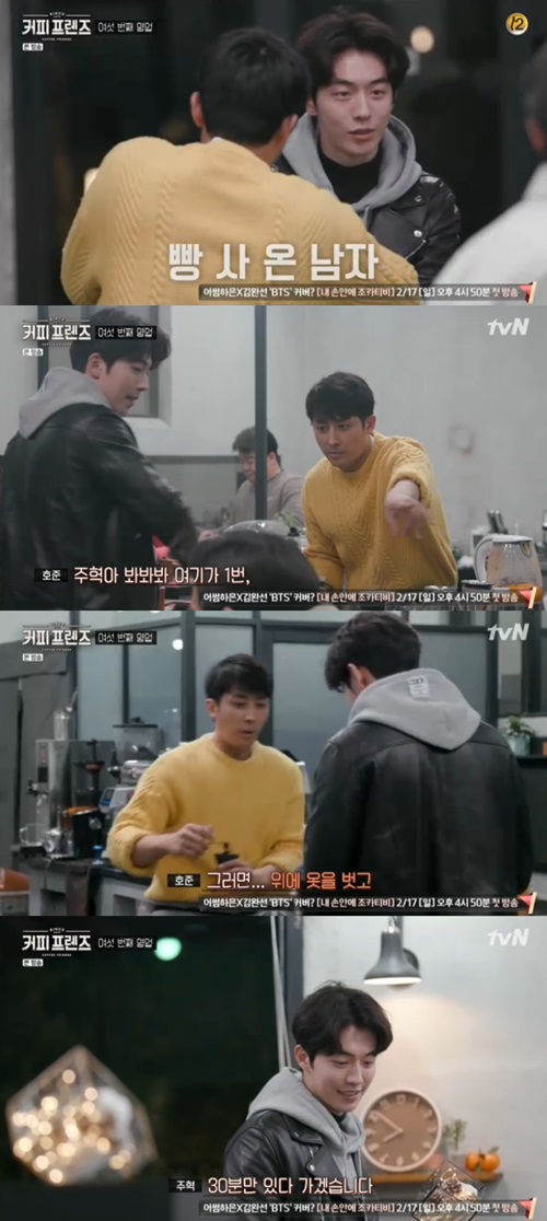 남주혁은 카페에 부족한 빵을 사들고 도착했다. '놀다왔다'는 남주혁은 오자마자 커피원두를 갈으면서 본격적으로 아르바이트생으로 변신했다. 손호준은 "얼른 옷 벗고 들어오라"고 말했다. 이에 남주혁은 "30분만 있다 가겠다"며 업무를 시작했다.