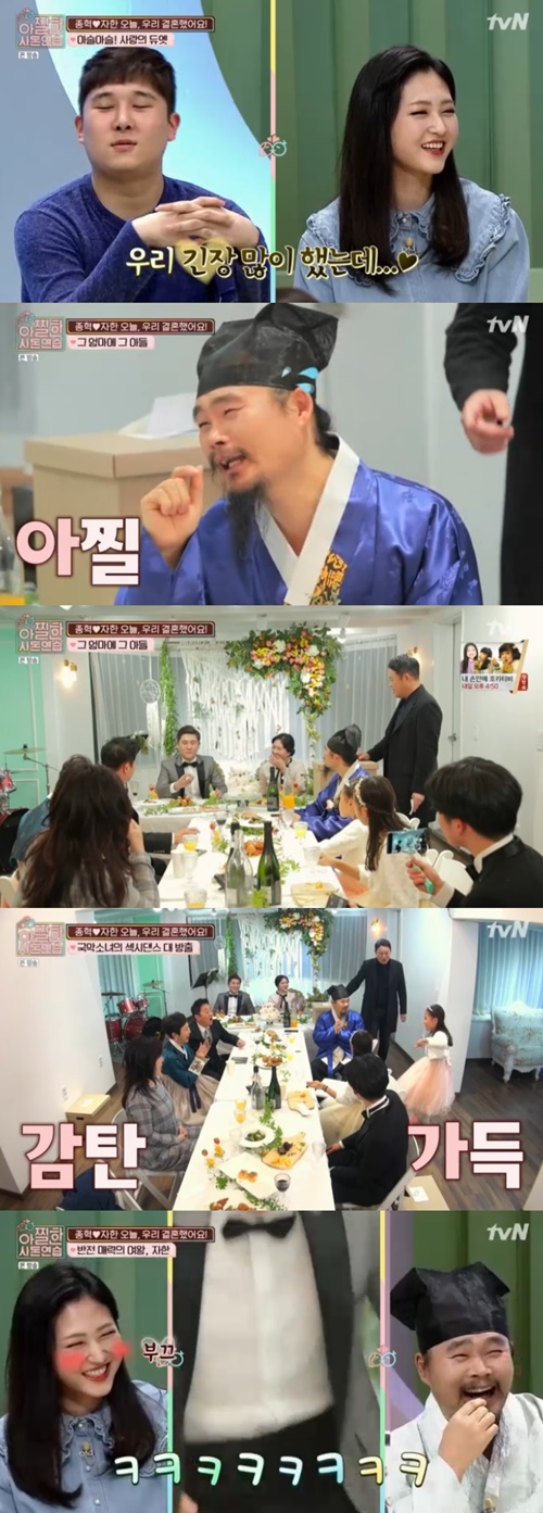 16일 방송된 tvN 예능 '아찔한 사돈연습'에서는 박종혁과 김자한의 달달한 결혼식 장면이 전파를 탔다.