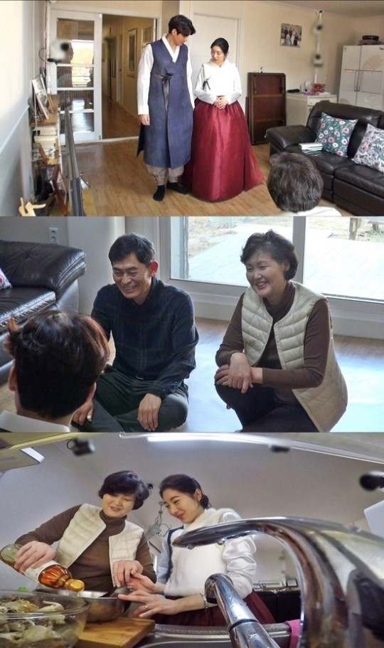 마지막으로 정겨운-김우림 부부가 지난 설날 시댁을 방문한 모습이 그려졌다. 한복을 곱게 차려입은 부부는 부모님의 따뜻한 환대 속에 새해 인사를 올렸다. 김우림은 "현금만 드리는 것보다는 화기애애한 분위기를 위해 이벤트를 준비했다"며 휴지 박스에 현금을 담아 준비했다. 곧이어 아내 김우림은 요리 장인인 시어머니께 반찬 레시피를 전수받기 위해 두 팔 걷고 나섰다.