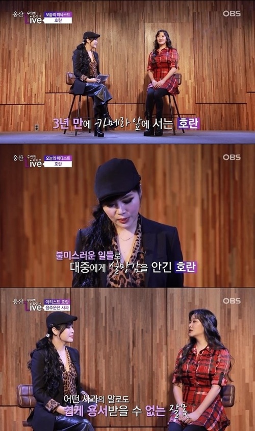 호란은 지난 2월 25일 방송된 OBS 경인TV '우연한 라이브'에 출연해 3년 전 음주운전에 대해 공식적으로 사과했다.