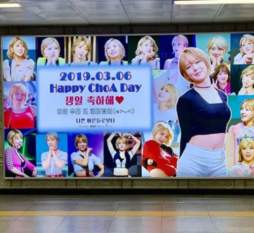 공개된 사진 속에는 초아의 팬들이 초아의 생일을 축하하기 위해 지하철 광고를 한 모습이 담겼다. 초아는 지난해에도 자신의 생일을 축하해준 팬들에게 감사 인사를 전한 바 있다.